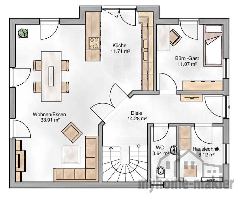 Arbeitzimmer: Durch den Enfall des Kellers haben Sie im Erdgeschoss ein Raum frei z.B. für ein Arbeitszimmer