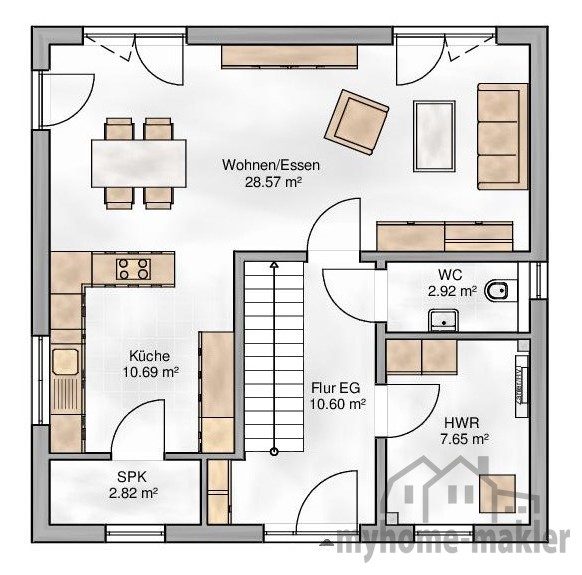 Arbeitzimmer: Durch den Enfall des Kellers haben Sie im Erdgeschoss ein Raum frei z.B. für ein Arbeitszimmer
