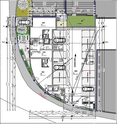 Das Baugrundstück für ein Mehrfamilienhaus mit bereits erteilter Baugenehmigung für ein 21 Wohneinheiten sowie 2 Gewerbeeinheiten. Das Wohnbaugrundstück weist einen dreieckigen Zuschnitt auf und ist von Geschäfts- sowie Wohnhäusern umgeben. Geplant ist ein Mehrfamilienhaus mit zwei Gewerbeeinheiten im Erdgeschoss und zwei Erschließungskernen. Die Baugenehmigung wurde am 19.09.2022 erteilt, und das Grundstück wird inklusive dieser Genehmigung veräußert.