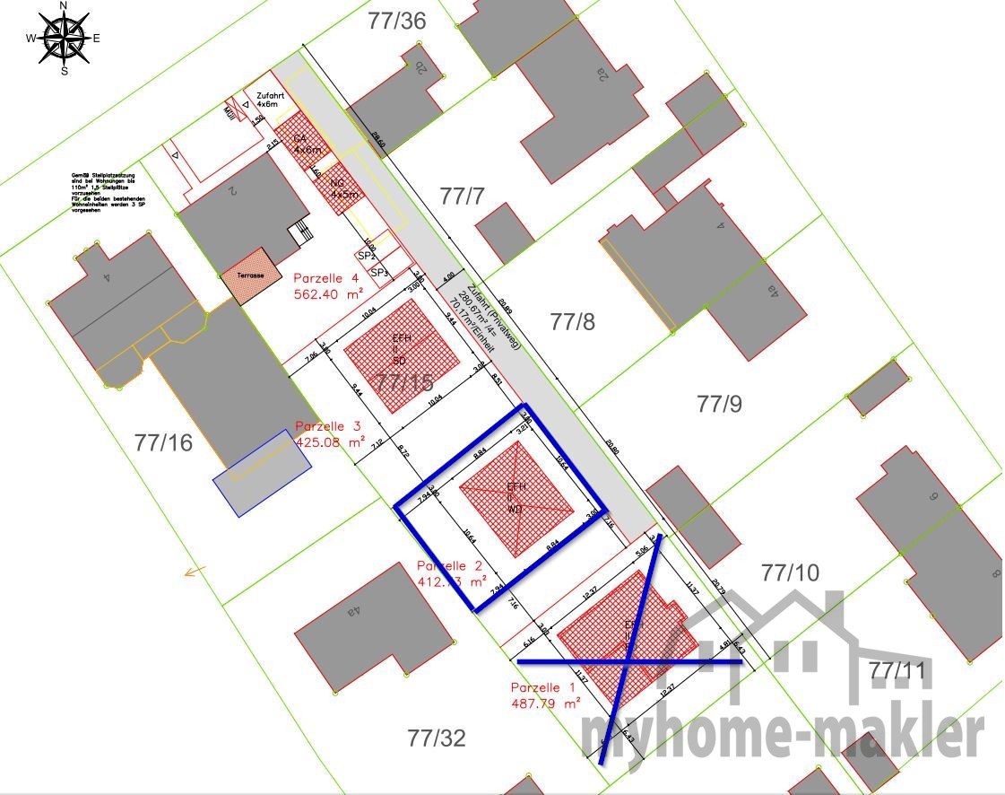 Das Grundstück umfasst nicht nur die Parzellen bis 3 Parzellen für eine Stadtvilla. Dieses Baugrundstück bietet eine entspannte Atmosphäre für Aktivitäten im Freien, für die Bauung für 3 Einfamilienhäuser.