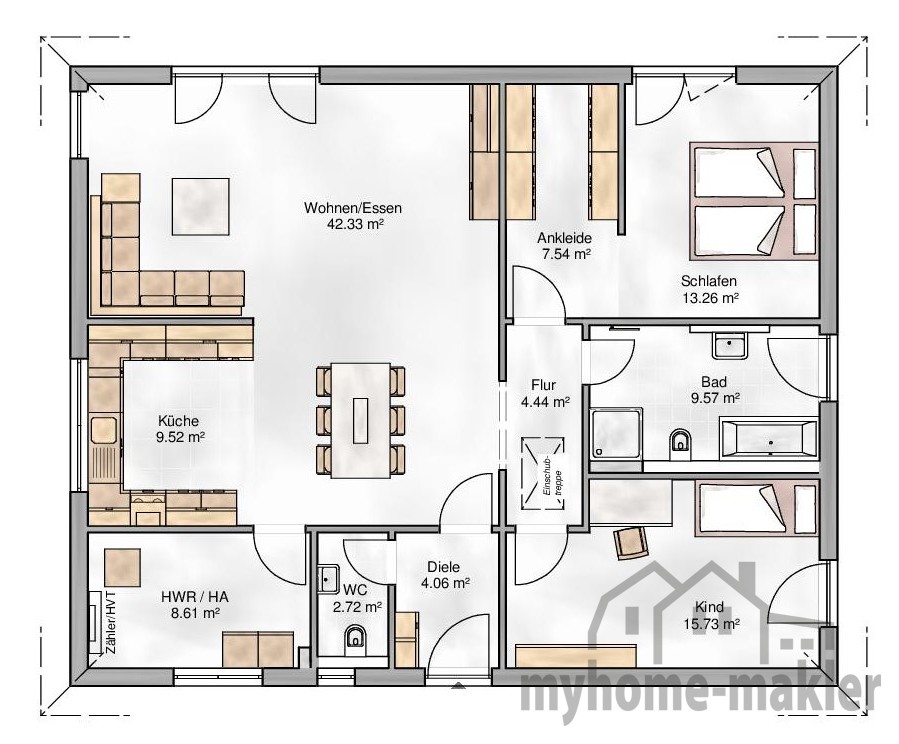 Die individuelle und frei gestaltbare Raumgestaltung kann nach Ihren Wünschen angepasst werden: