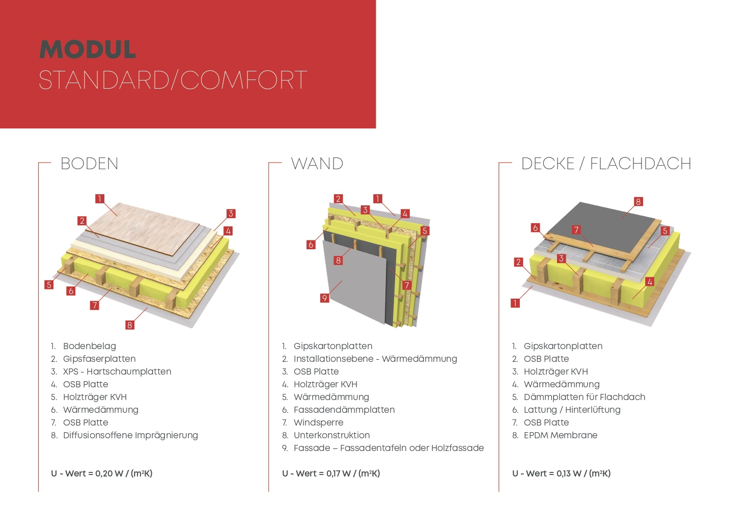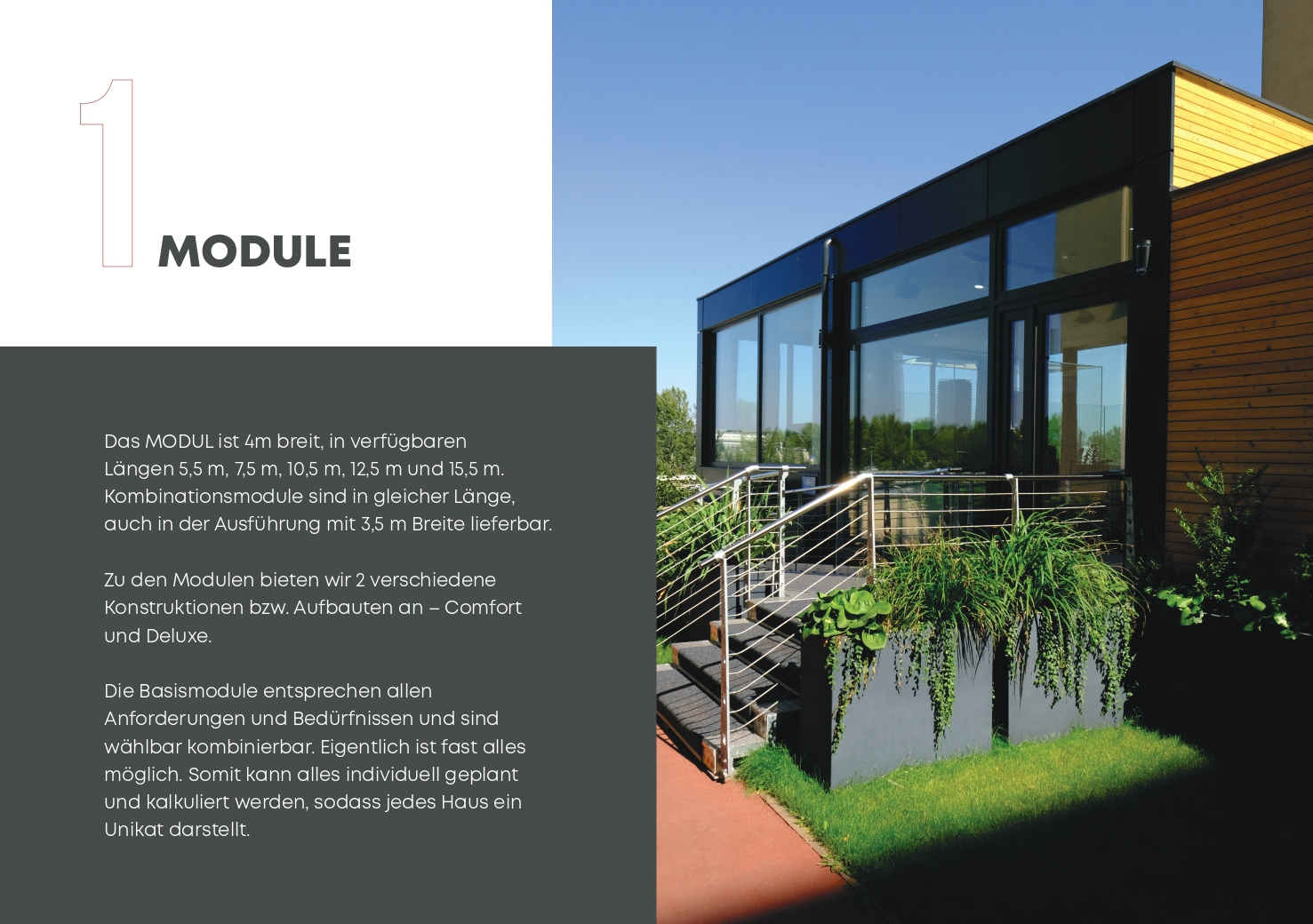 Ihre neues Mobile Home zeichnen sich durch eine hohe Energieeffizienz, Stabilität und eine qualitativ hochwertige Produktion mit Fokus auf modernem Design und Detailgenauigkeit, aus. Die Module werden in 4m breite und sind in verfügbaren Längen von 5,5 m, 7,5 m, 10,5 m, 12,5 m und 15,5 m. kombinierbar, sowie auch in der Ausführung mit 3,5 m Breite lieferbar. Somit ist Ihr Haus auch in der Zukunft Erweiterungs- und Ausbaufähig.